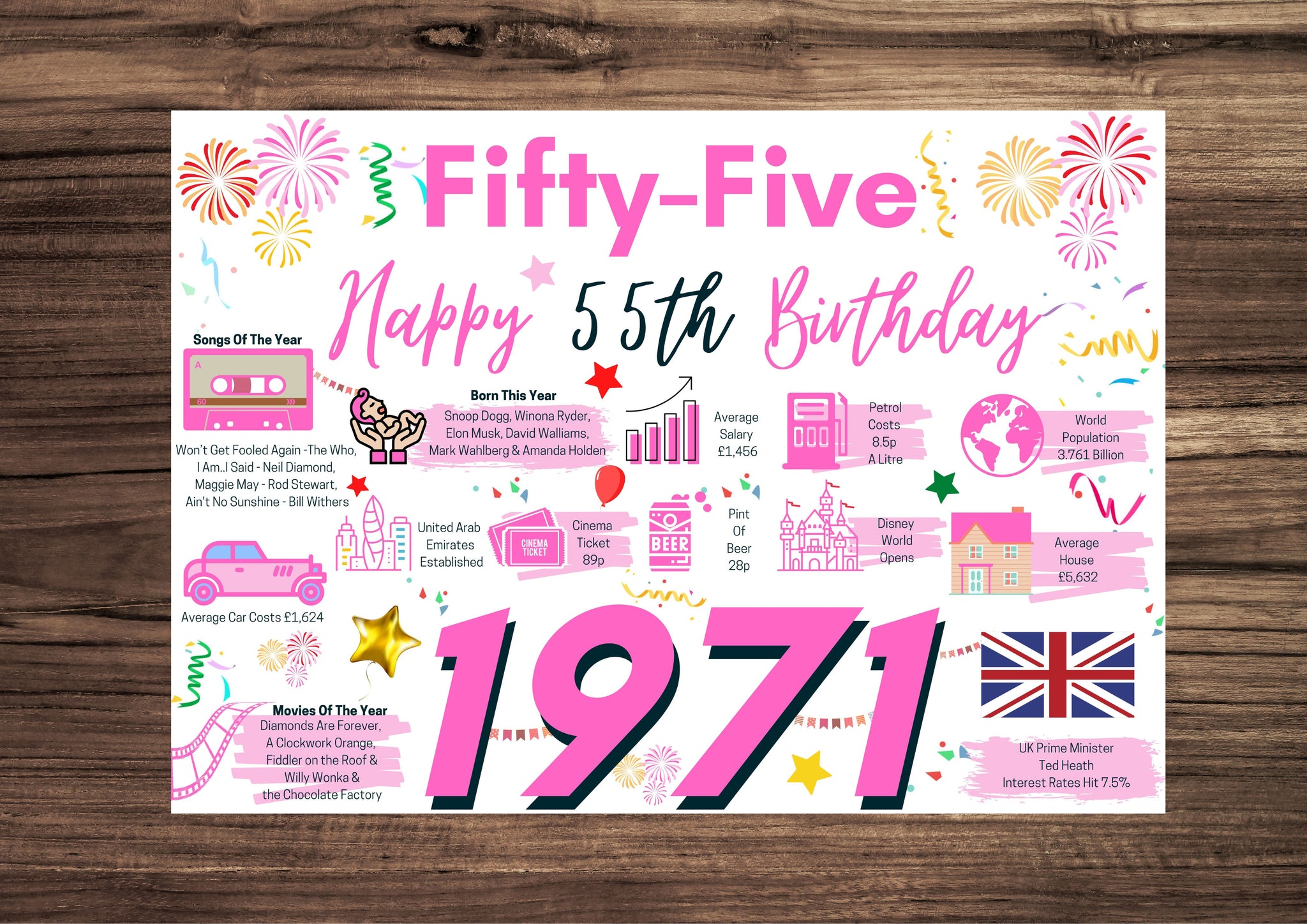 55th Birthday Card For Her Fifty-Five, Born In 1971 Facts Milestone