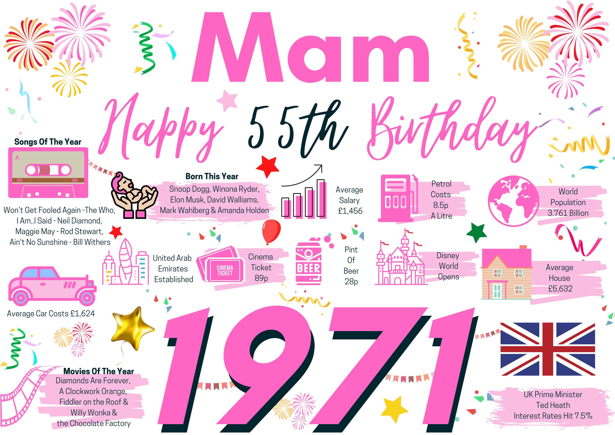 55th Birthday Card For Mam, Born In 1971 Facts Milestone