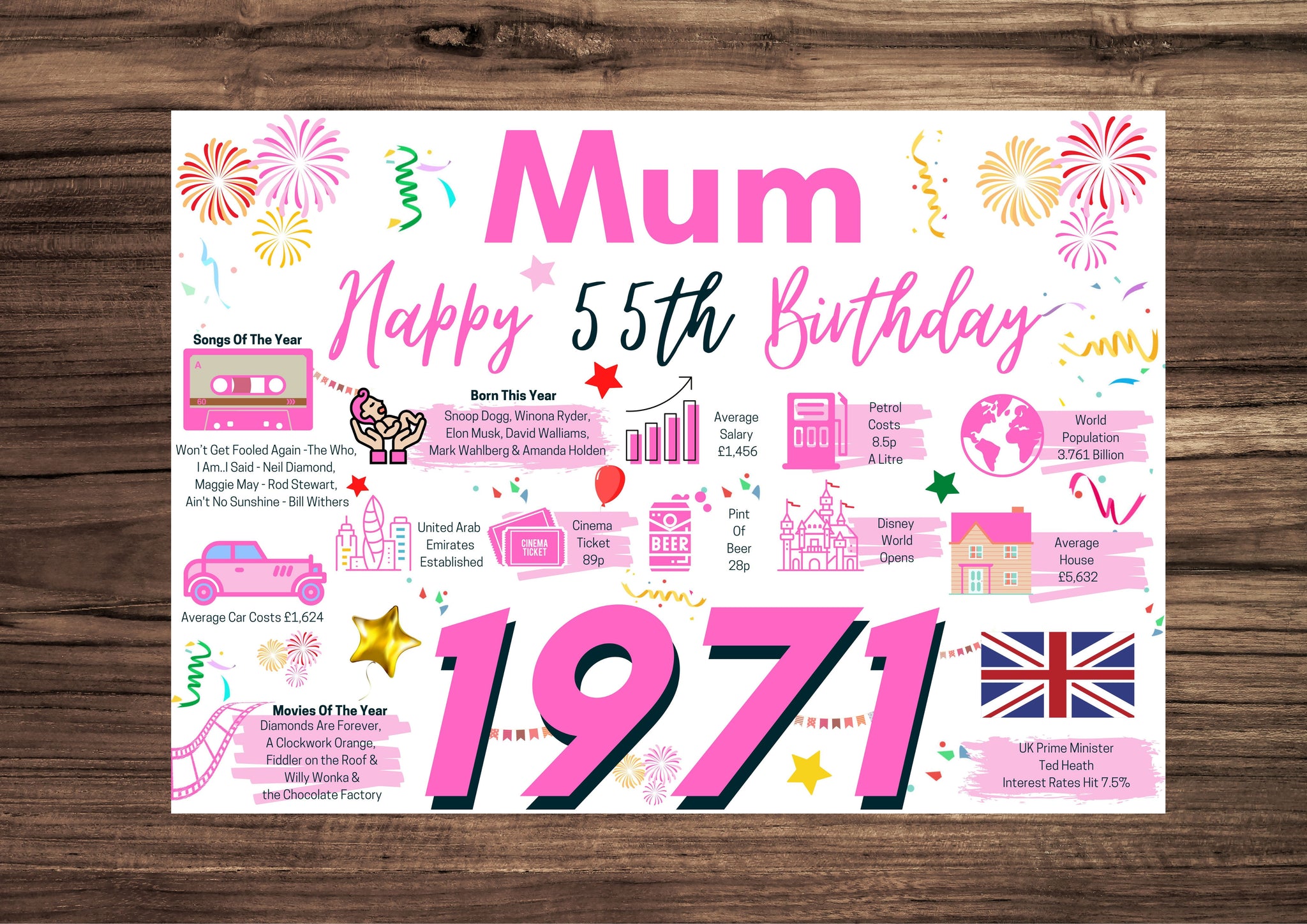 55th Birthday Card For Mum, Born In 1971 Facts Milestone