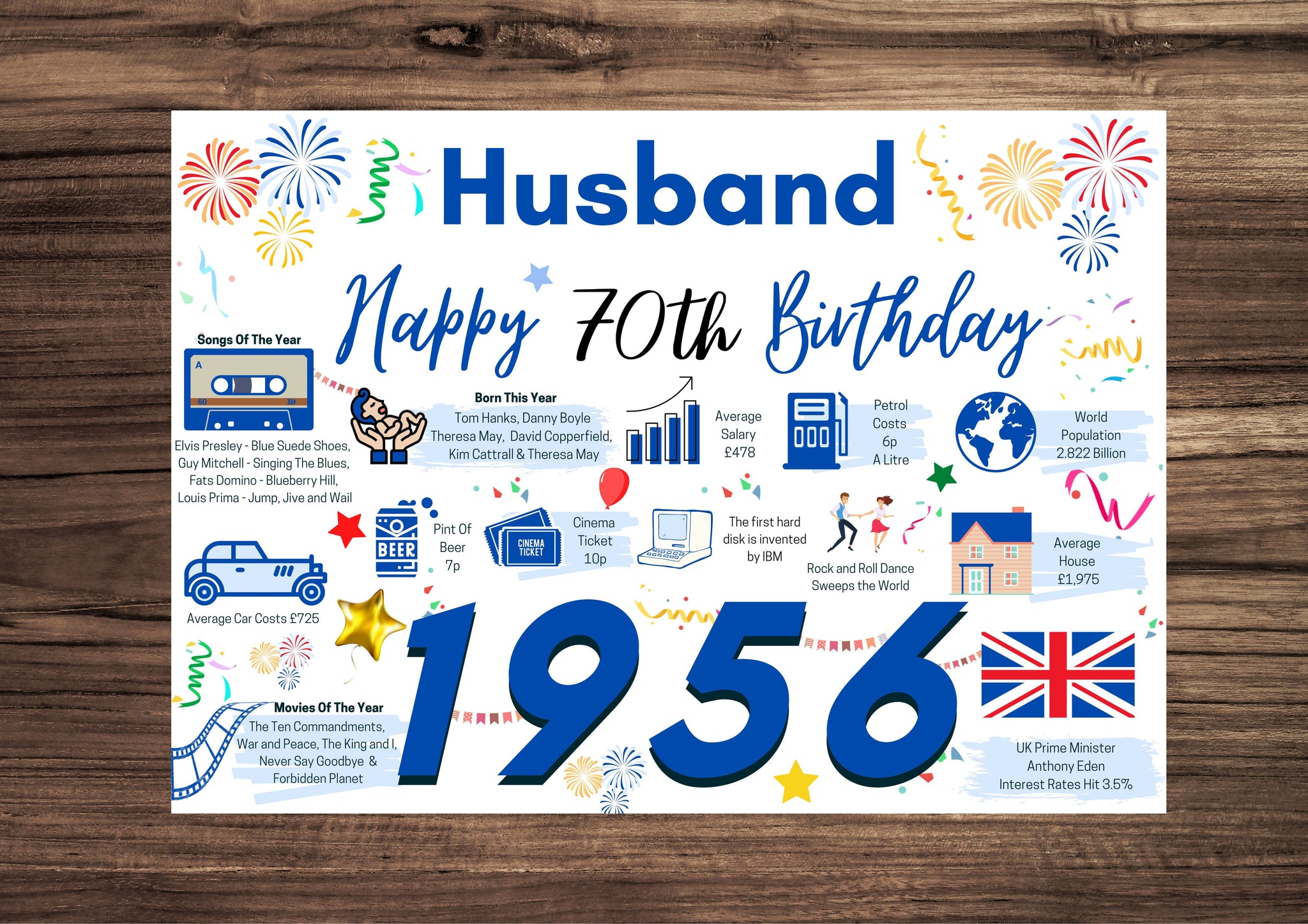 70th Birthday Card For Husband, Born In 1956 Facts Milestone