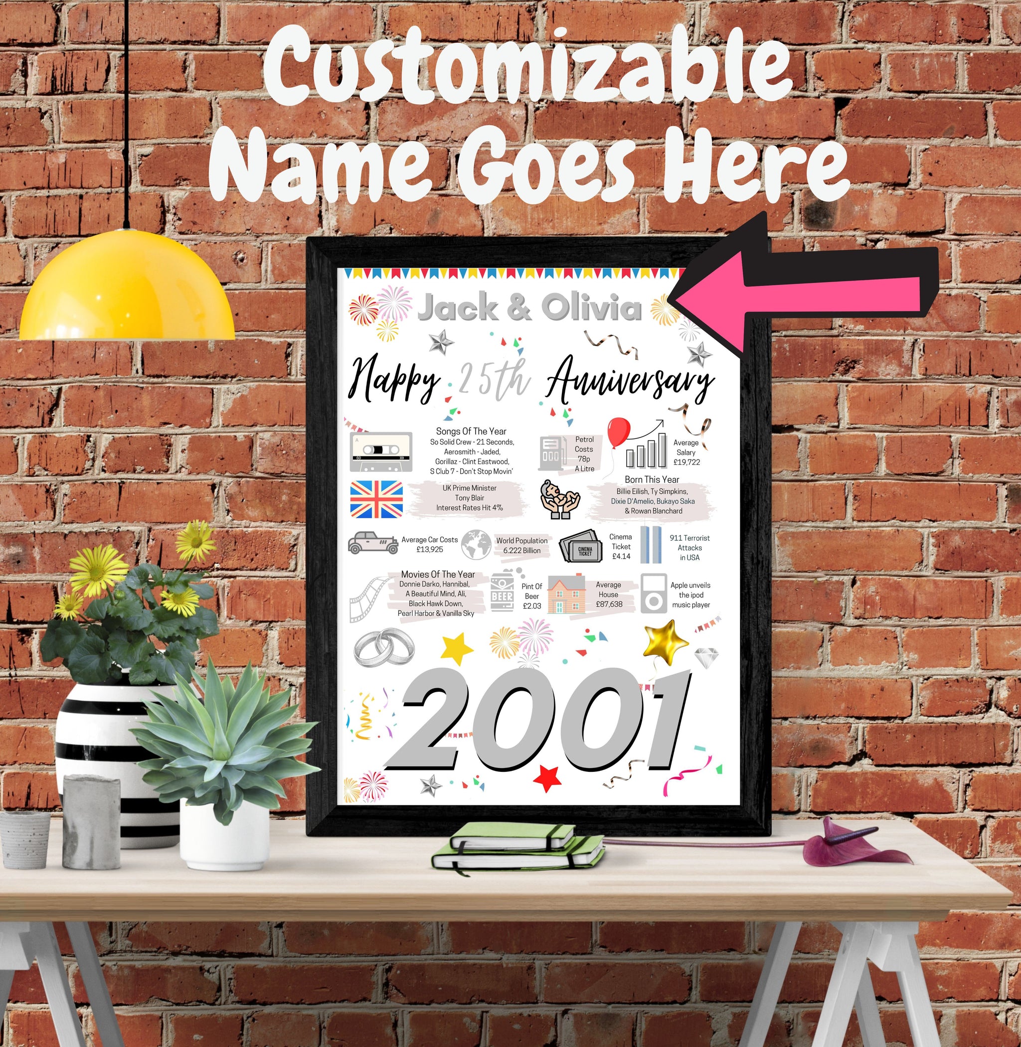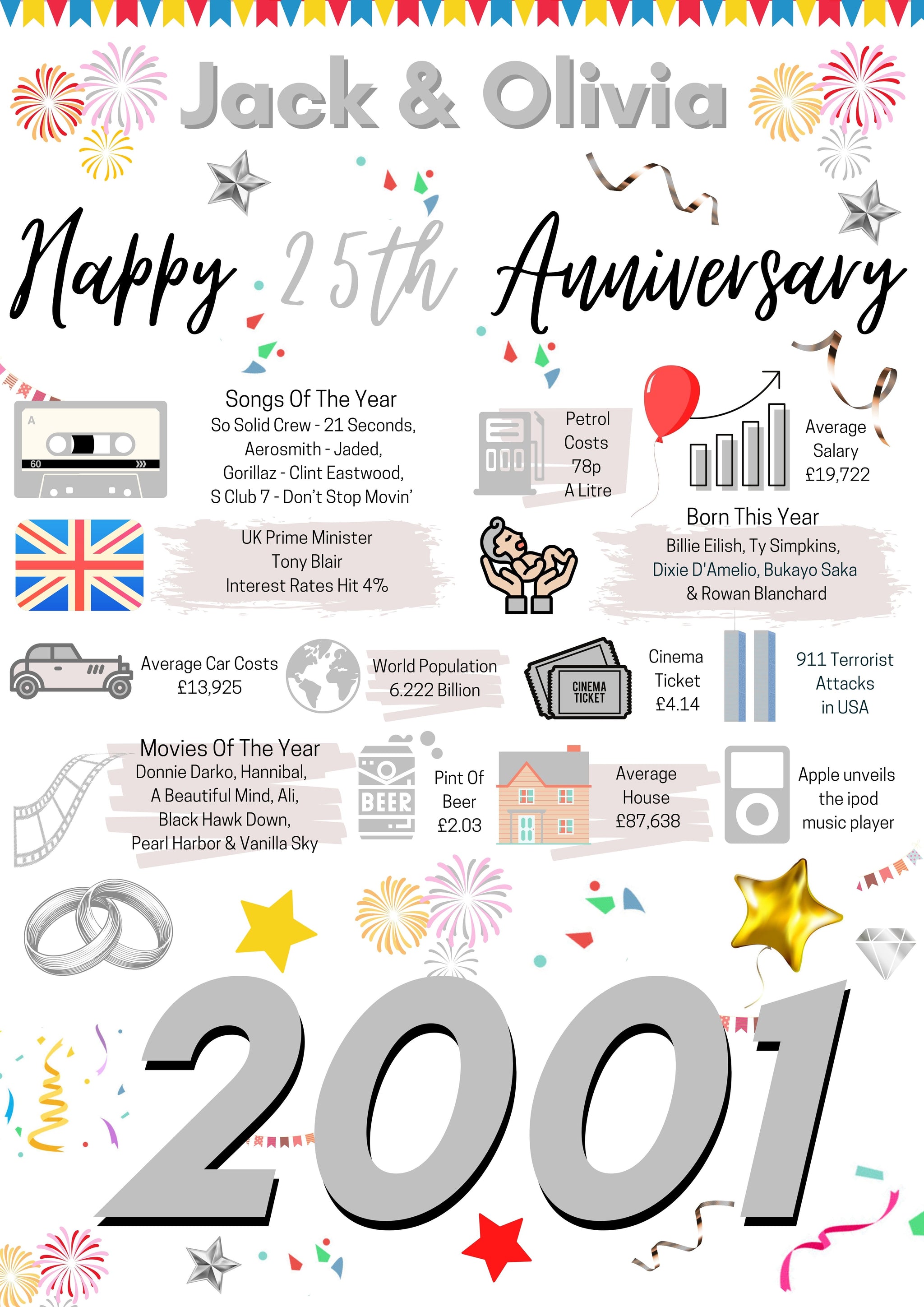 This 25th Anniversary Poster is a great way to remember the events that happened 25 Years ago in 2001.