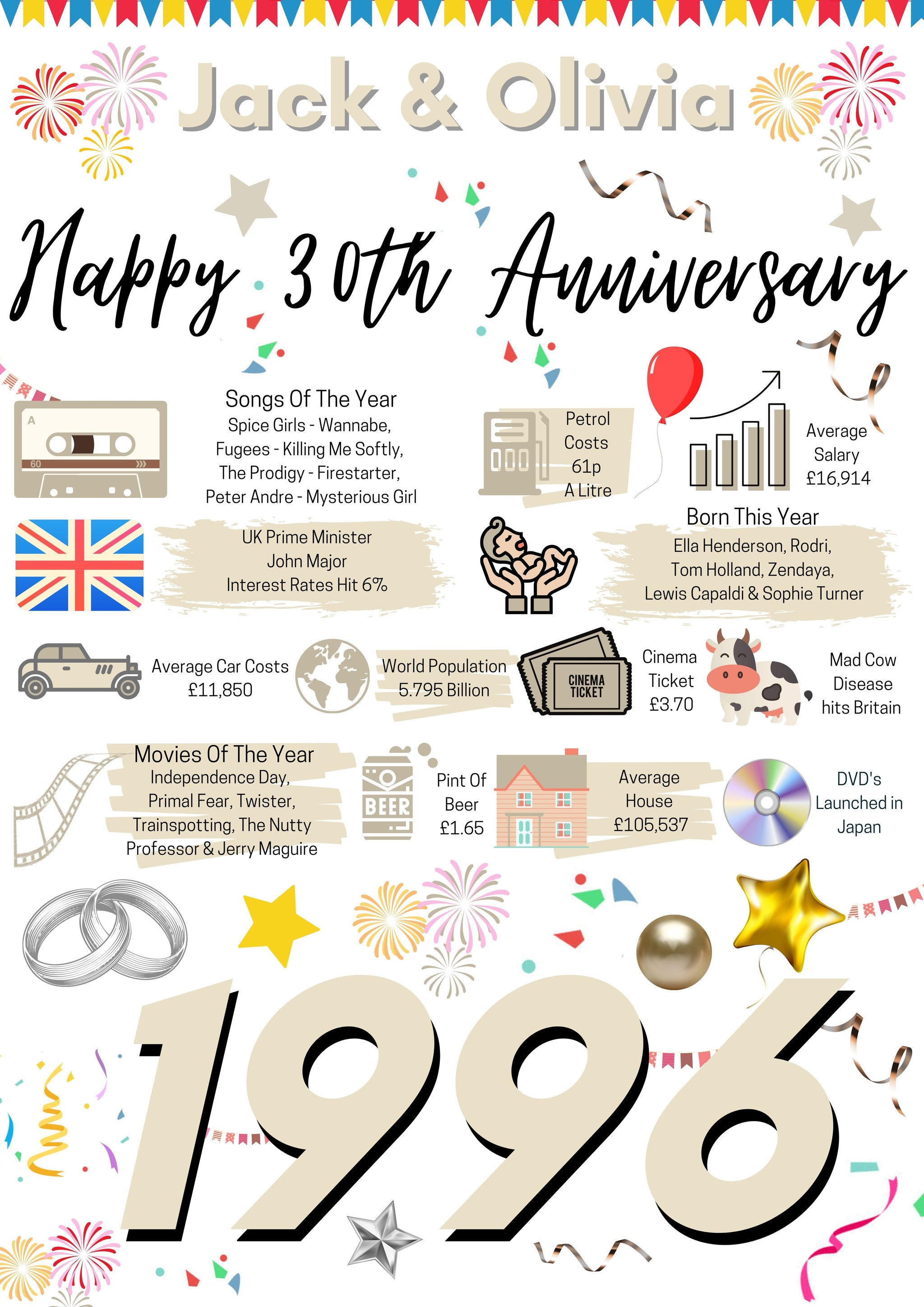 This 30th Anniversary Poster is a great way to remember the events that happened 30 Years ago in 1996.