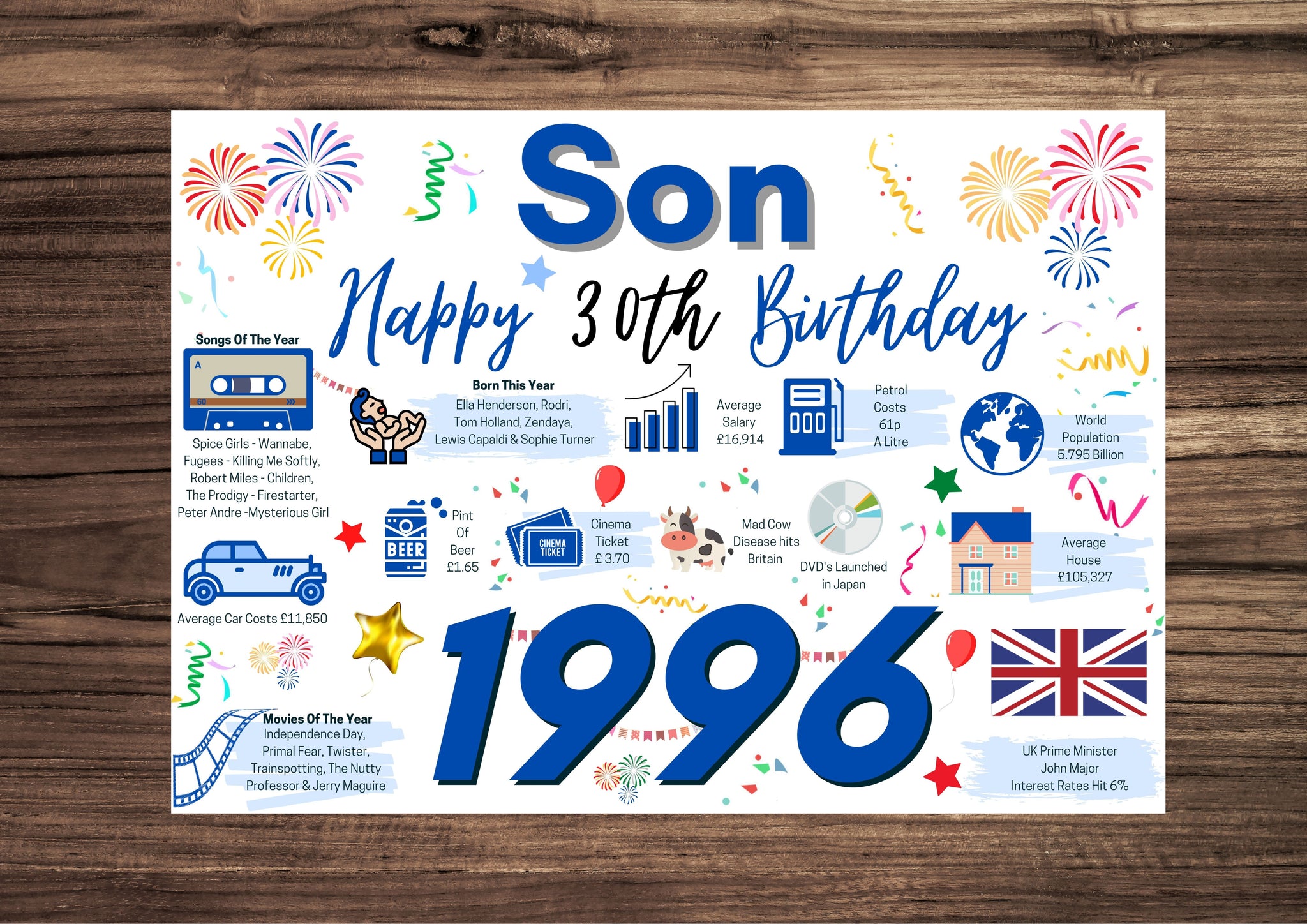 30th Birthday Card For Son, Born In 1996 Facts Milestone