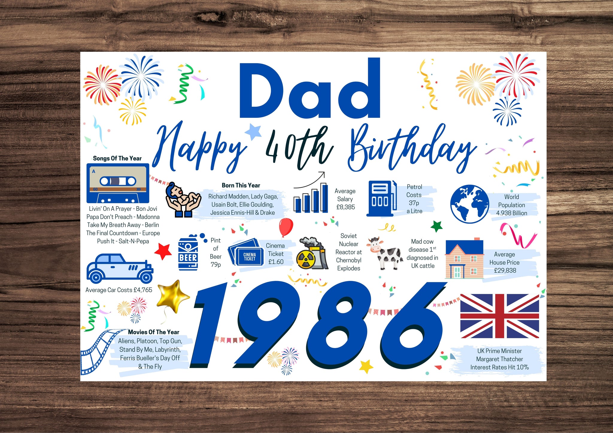 40th Birthday Card For Dad, Born In 1986 Facts Milestone