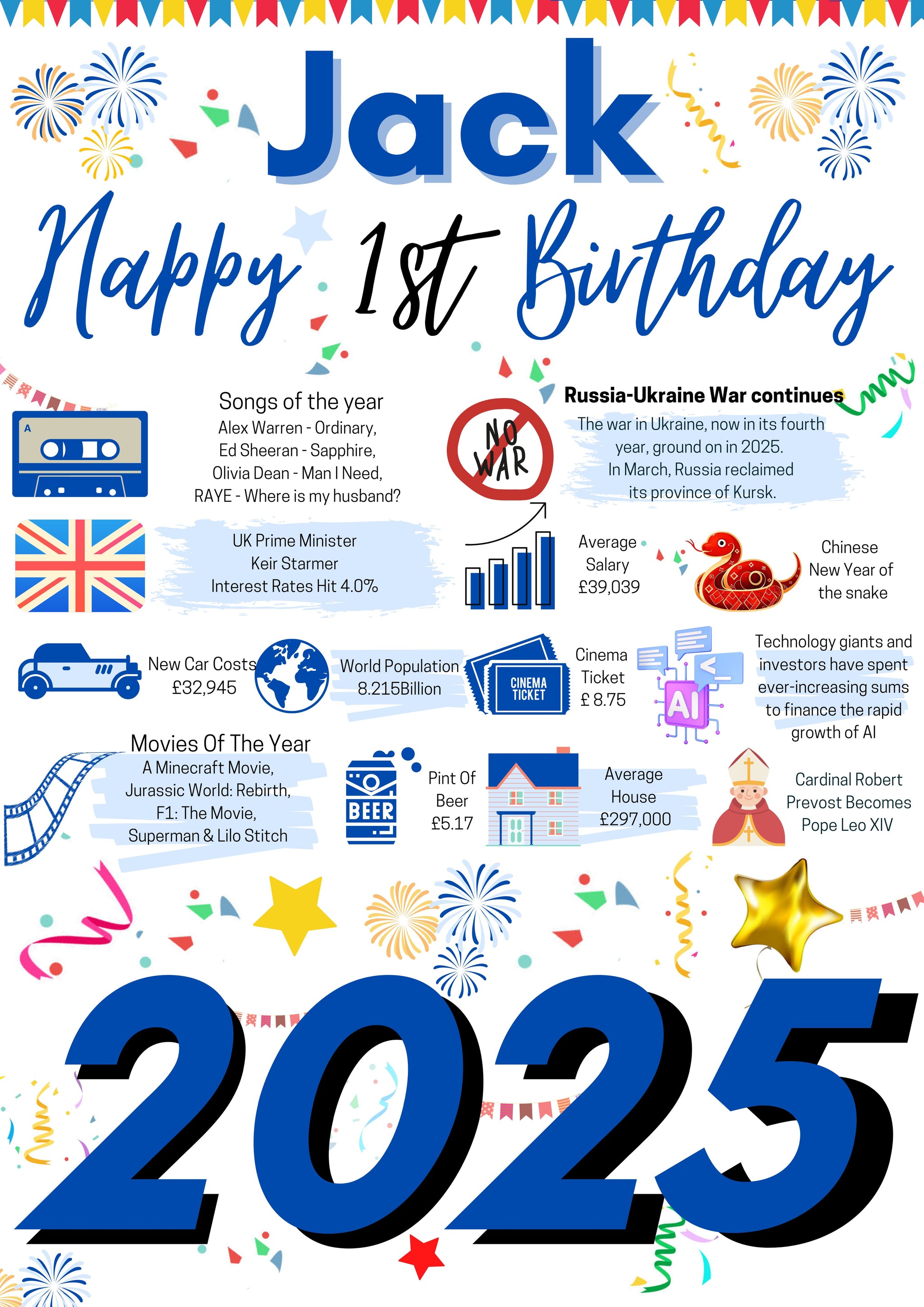 This "Year You Were Born" poster is a great way to remember the events that happened 1 Years ago in 2025.