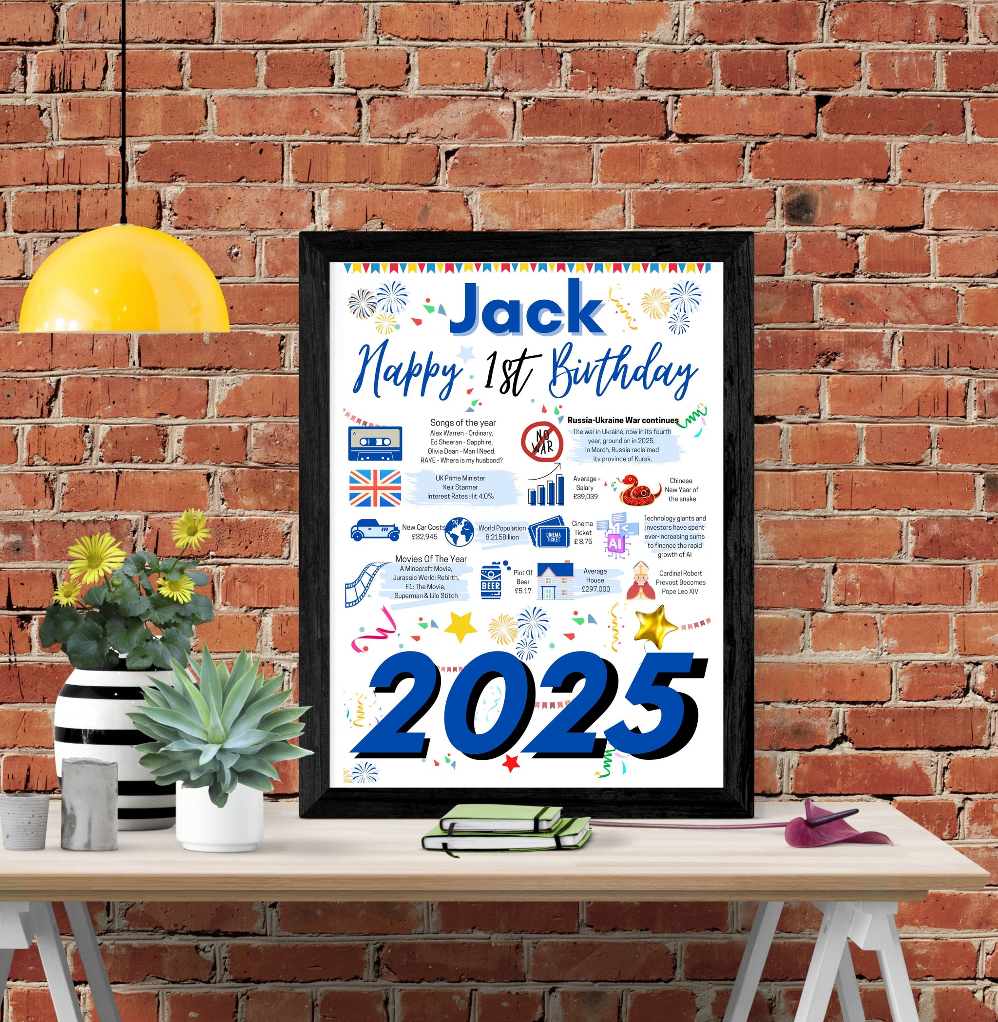 1st Birthday Poster Present Gift + Personalised Name For baby boy