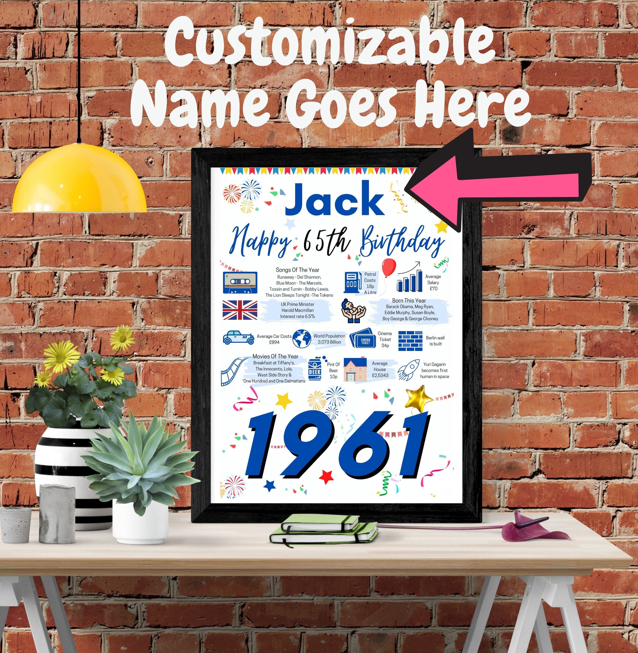 This "Year You Were Born" poster is a great way to remember the events that happened 65 Years ago in 1961.