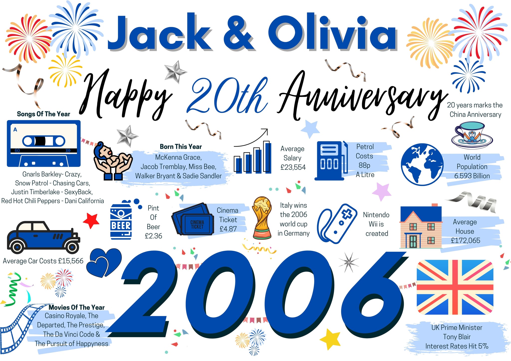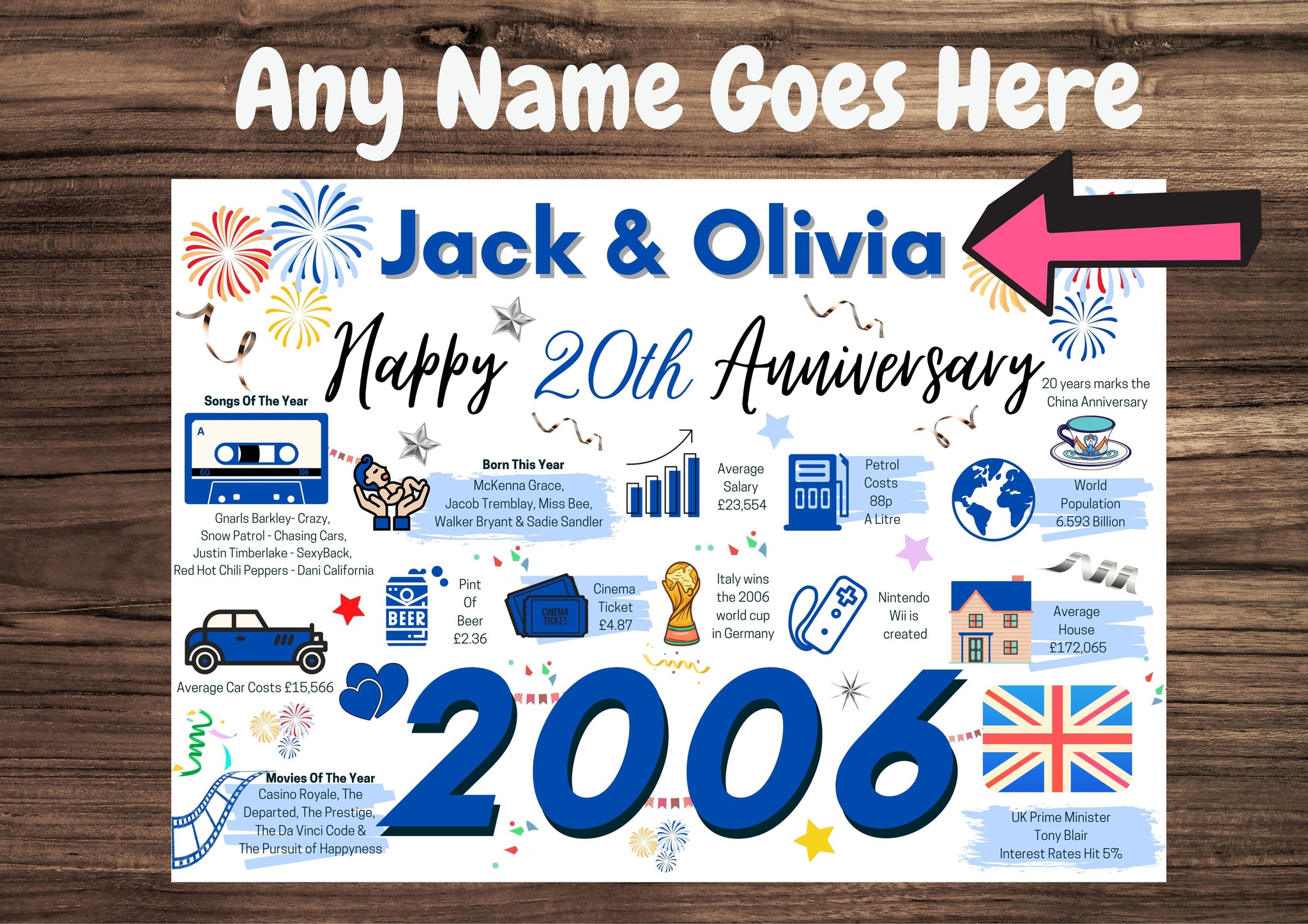 This 20th Anniversary card is a great way to remember the events that happened 20 Years ago in 2006.