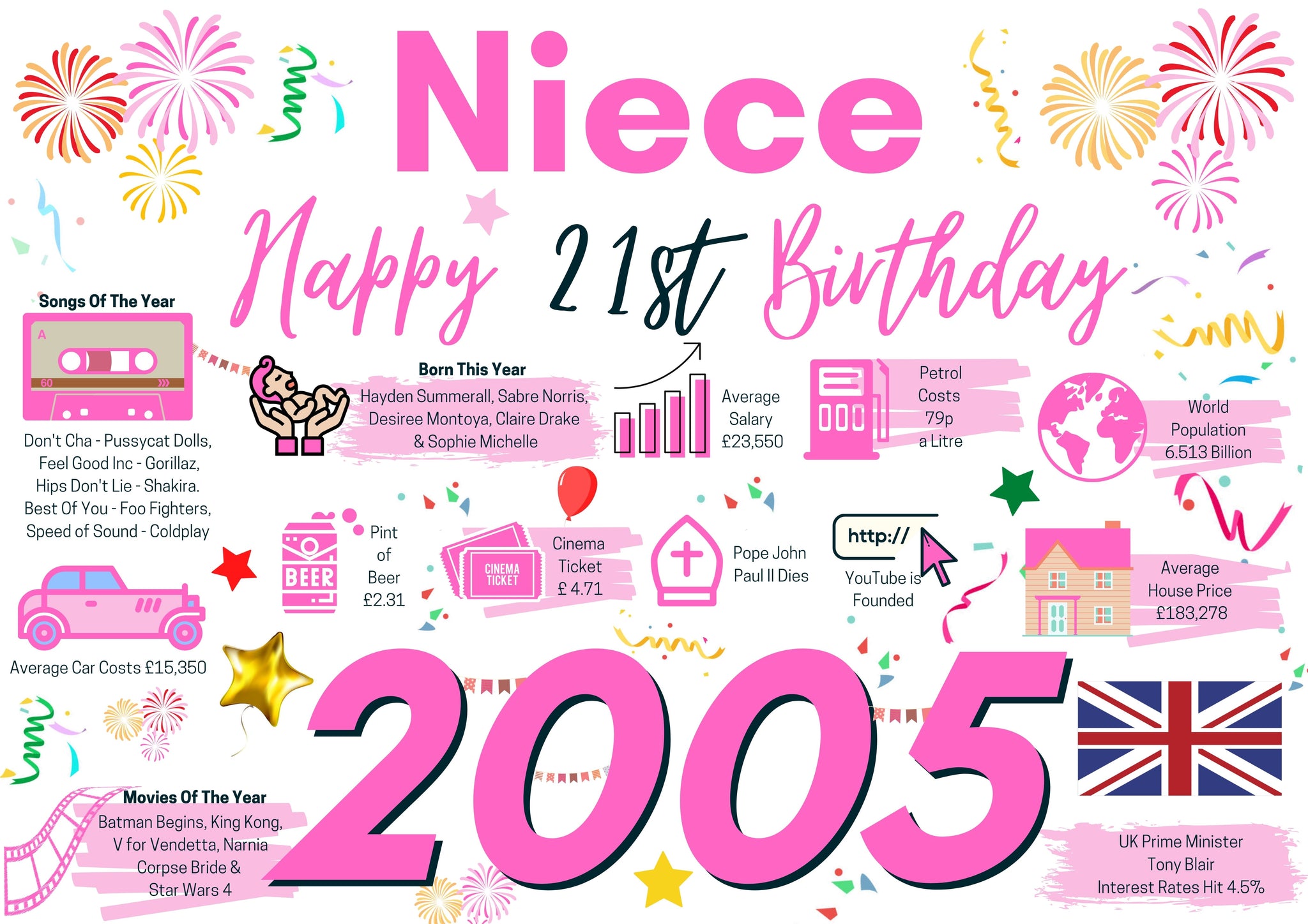21st Birthday Card For Niece, Born In 2005 Facts Milestone