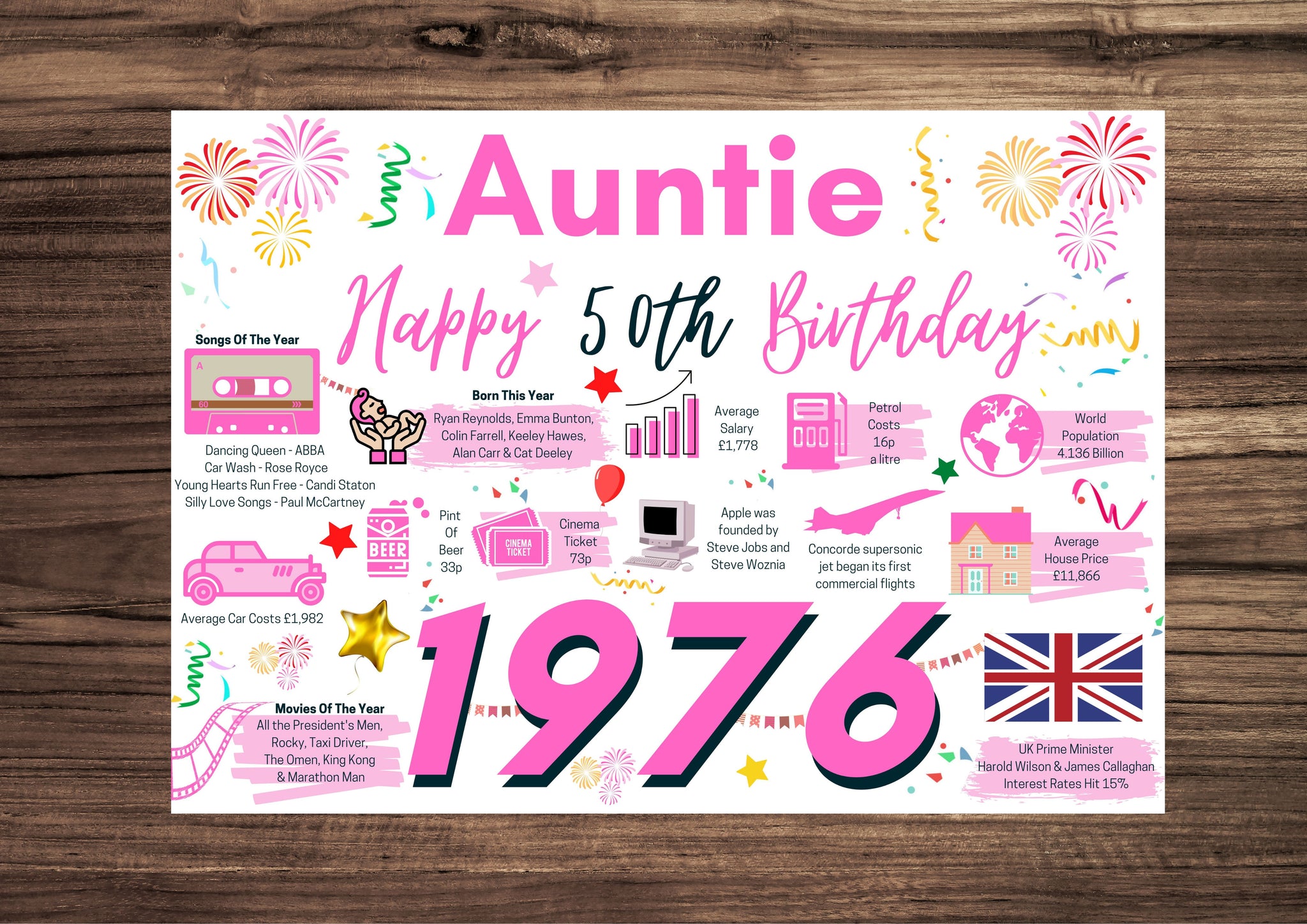 50th Birthday Card For Auntie, Born In 1976 Facts Milestone