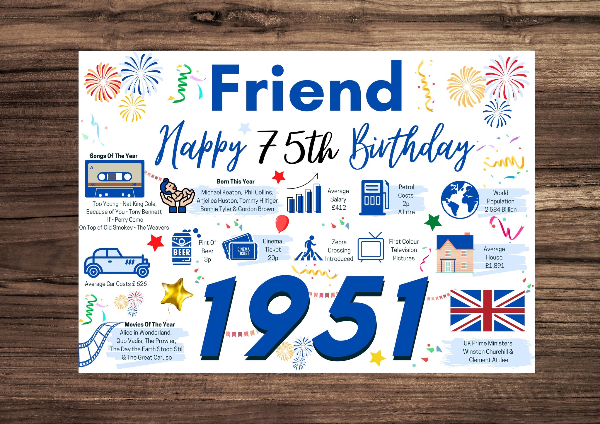 75th Birthday Card For Him, Birthday Card For Friend Seventy Five , Born In 1951